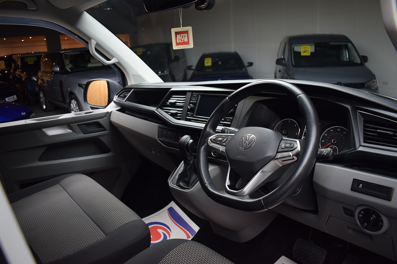 The specification consists of; Black & Grey cloth trim, 3 x Travelling seats, Air conditioning, Rapid de-ice windscreen, Colour touch screen multi media system, Apple car play, Andriod auto, Bluetooth, DAB, 2 x USB, Leather bound multi funtion steering wheel, Adative cruise control, Speed limiter, Front assist, Traction control, Auto lights, Auto wipers, Electric adjustable heated folding mirrors, Electric windows, Remote central locking, Front & rear parking sensors, Side loading door, Rear tailgate, Rear load area carpeted & ply-lined, Metal bulkhead, 16" Silver alloy wheels, Mud flaps. For any further information, please do not hesitate to call us on 01942 318272.